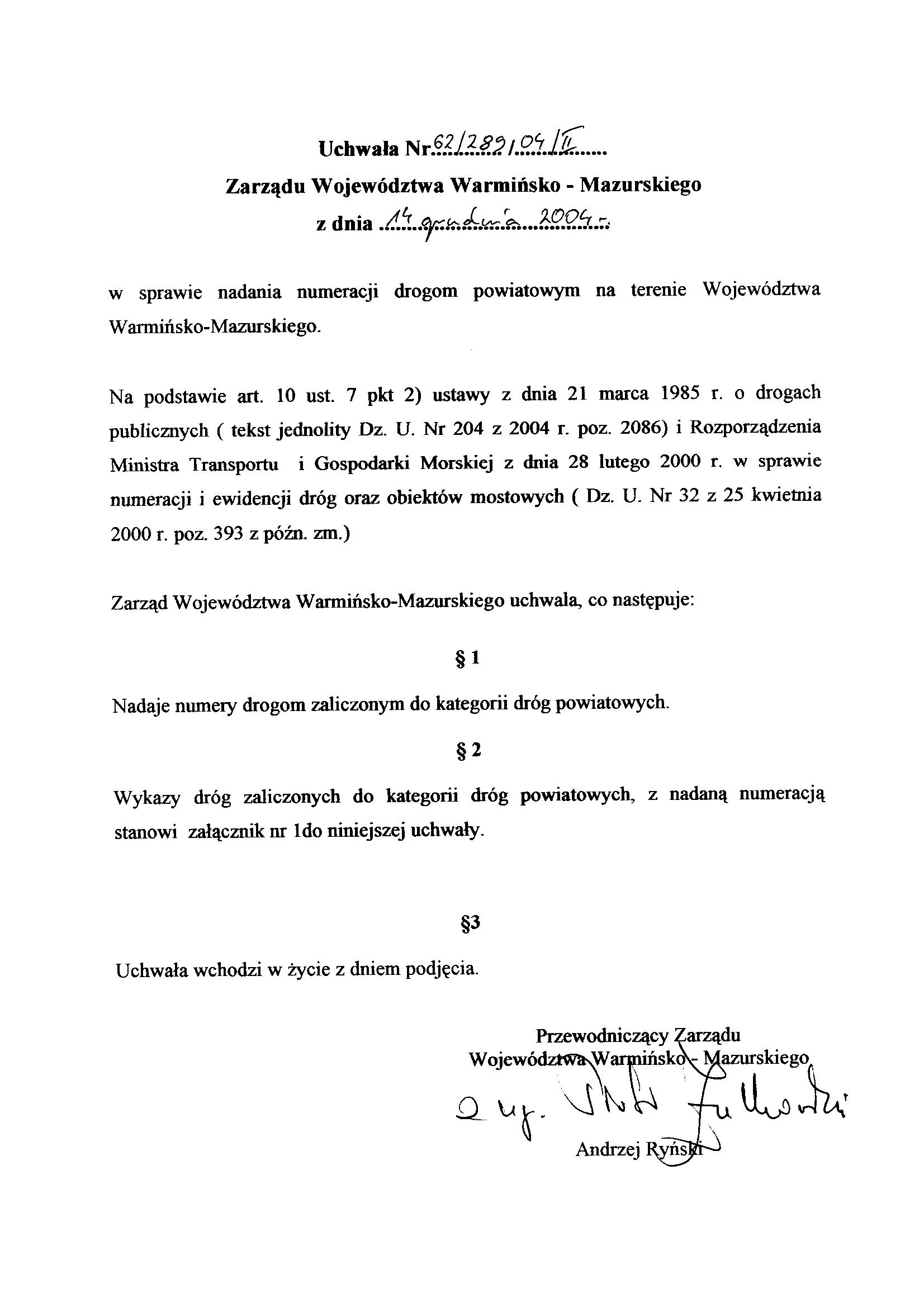 Uchwała Zarządu Woj. - zmiana numeracji dróg powiatowych 2004