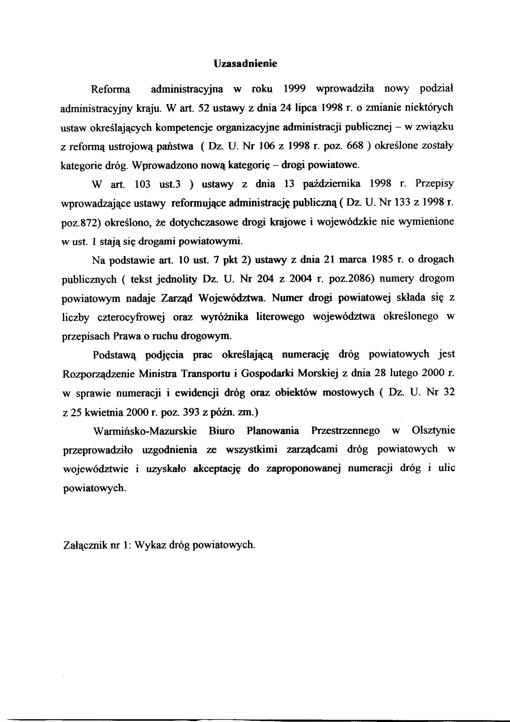 w sprawie nadania numeracji drogom powiatowym na terenie Województwa Warmińsko-Mazurskiego.